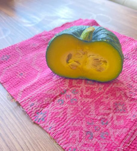 今日はカボチャ餅が登場します❤️切ってみると思ったより黄色くて、カシャリ🤳