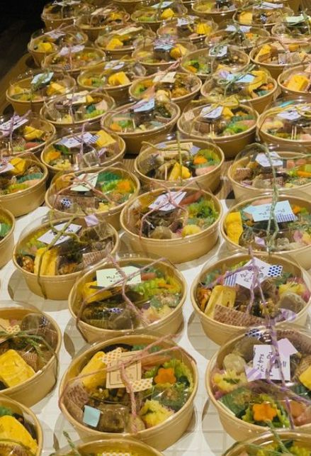 どうですか?この握り尽くされたおにぎりさん達🍙💕ざっと100個です🤗先日の土曜日またお弁当のオーダー頂きましてこの様な事態になった訳であります‥ありがたいことです🙇‍♀️✨お写真2枚目、今回は丸型のボックスに詰めてお渡ししました。ランチボックスによって雰囲気も変わりますね♪ご要望に合わせたオーダーもご相談もらえれば対応してします♬