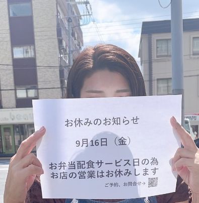 9月16日(金)は地域お弁当配食 サービスの為、お店はお休みいたします🙏