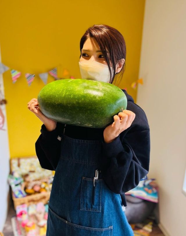 持ち上げるのも掛け声がいるこの子❤️大きな冬瓜✨