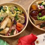 ちょこちょこ8種のおかずが詰まった日替わり弁当。味噌汁とおにぎり2つ付いてきます